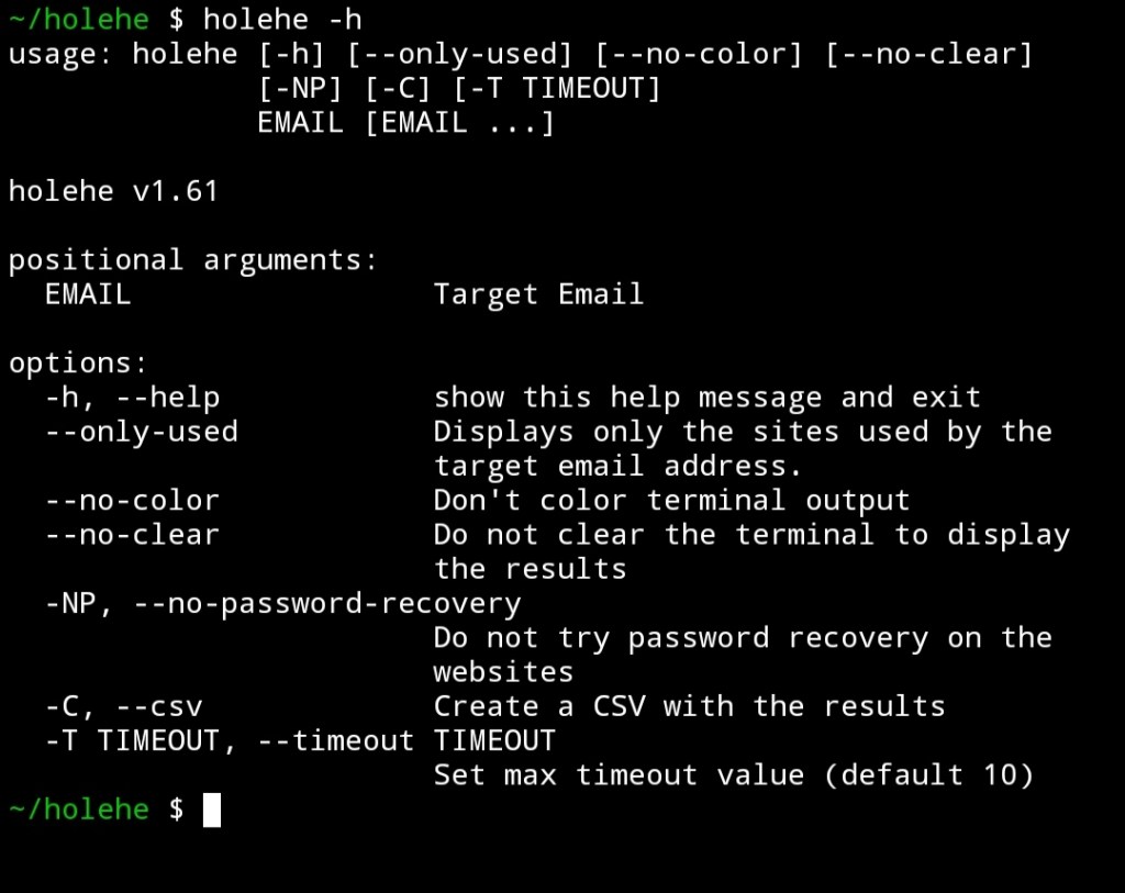 - git clone https://github.com/megadose/holehe.git