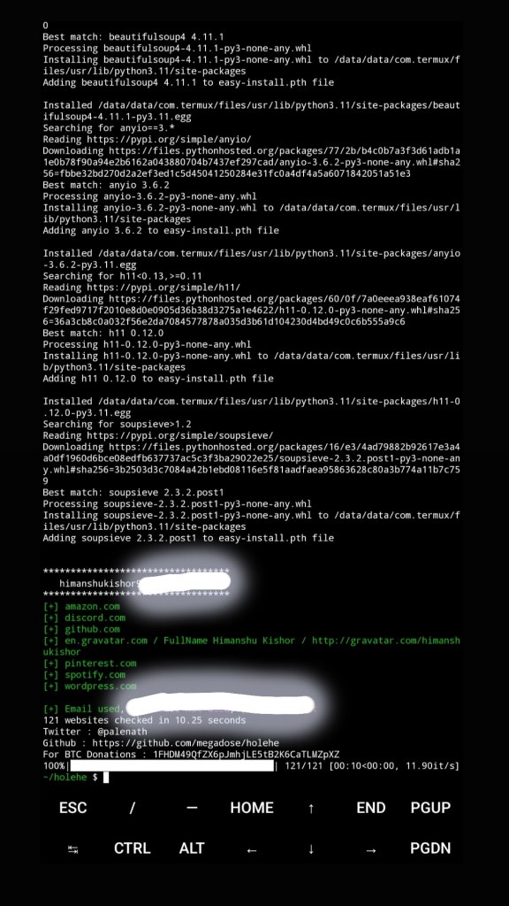 Holehe checks if an email is attached to an account on sites like twitter, instagram, imgur and more than 120 others.